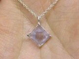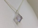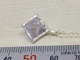 透明度に優れた淡いラベンダー色*イリノイ産フローライト八面体のシンプルなシルバーペンダント*フローライトは劈開方向がハッキリしているため金具差し込みでは力が加わった際に割れてしまう可能性が高く透明度が高いほどその加工痕も見えてしまうのでそれぞれに合わせた石枠を作っております*八面体ですのでコロンコロンと45度左右に向きます*黒化遅延の樹脂コートを施してあります*925チェーン太さ1.3㎜長さ40㎝*長さのご要望がございましたら承ります*