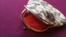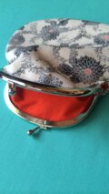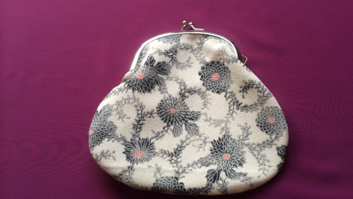 古布の状態の良いところ・柄のきれいなところをとって、がまぐちをつくってみました。