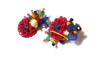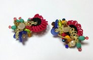 ループの組み合わせで花をかたどっているモチーフに、マットカラーのラインストーンやカットビーズ、スワロフスキー等を組み合わせたイヤーカフです。