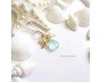 パールとスターフィッシュのマリンネックレスになります。 夏にぴったりな爽やかなミントカラーで、胸元に小さな海を感じさせてくれます。 さり気ないプチサイズネックレスなので重ね付けにも良いです*^^*