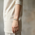 マリンカラーの天然石を、あたたかいゴールド色の真鍮と合わせ、シンプルなバングルにしました。