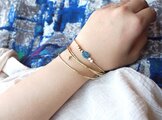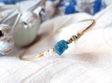 原石アパタイトとパールの真鍮バングル
