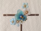 お花はすべて一枚一枚染めて、こてあてした染め花を樹脂加工しました。