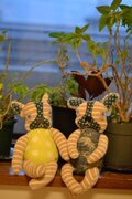 手足の先とお尻まわりに、少し重いビーズのようなペレットを入れて作ってみました。