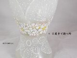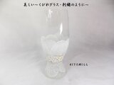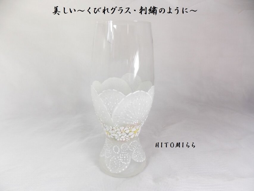 ガラスの美しい~くびれグラスにお花と刺繍を手描きいたしました。とても高級感のあるガラスです。白の世界です。・・^^いかがでしょうか?