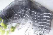 オーガンジー生地にビスコースの糸が横に入った、柄入りのシルク70%、ビスコース30%のストールです。