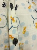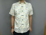 新作手作り半袖和柄シャツ(金魚すくい)生成りに黒・黄色金魚