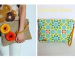 前と後ろで異なるデザインを使って2面楽しめ、ストラップは左右付け替え可能の、便利で楽しいクラッチバッグです。