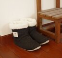 外布はウールを使い、内布はもこもこの、あたたかいルームブーツです。シープボアのやわらかい肌ざわりは最高!寒い季節の足元の防寒対策としても。