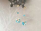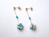 marumariと名付けた淡水パールと季節の天然石でぼんぼりのような丸みを作り、ぶら下げてピアスに仕上げました。今回は夏のメージで爽やかなブルーターコイズと淡水パールで出来ています。