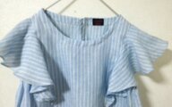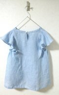 素材にイタリア製の上質なリネンガーゼを使い脇にゴム使用にして、かぶって簡単に着脱出来る工夫をしたオシャレで便利なフリルブラウスです。