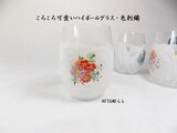 ガラスのころんとしたグラスに手描きました。全体に白でふんわり世界を作り、刺繍のように一杯のお花を手描きいたしました。お花はもこもこ感に描きレース模様をいれて仕上げました、ふちに金彩をいれています。かわいい感じです・・^^