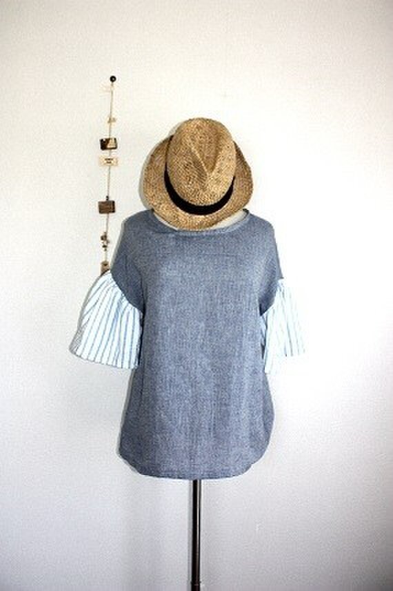 ドロップショルダーライン腕周りゆったり、ふんわり袖がかわいらしく、