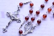 ※59個の玉を使用し、並び方も本格的なロザリオを同様に作っておりますが、こちらではアクセサリーとして販売しています。