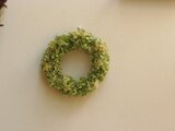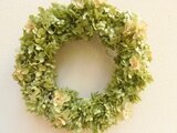 アナベルは小さい束をリース台に立体的にアレンジしています