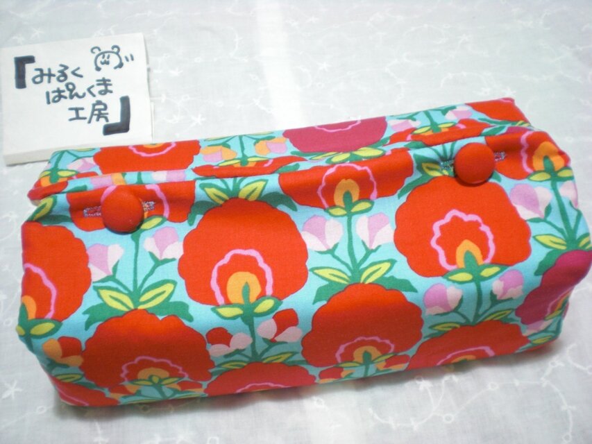 水色地に赤いお花が映える、とっても鮮やかなカバーです。お部屋を明るく彩ります♪