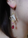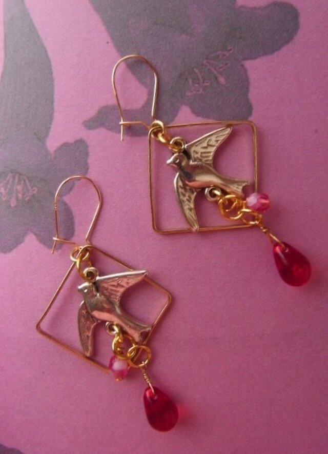 小鳥のモチーフとピンクと赤のチェコビーズを