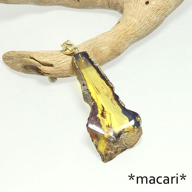 ドミニカ産 ブルーアンバーの原石スライスペンダント