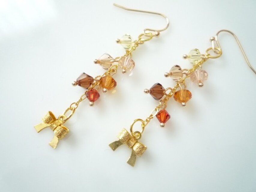 のグラデーションのスワロフスキーと立体的なリボンモチーフを組み合わせたピアスです。