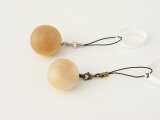 木部の直径は約25mm。金具などを含めた長さは95mmほど。他に球体のストラップ-トチ-小と円錐も別ページに掲載しています。