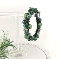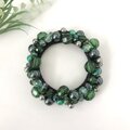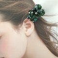 エメラルド グリーン の クロッシェ シュシュ 緑 深緑 かぎ針編み ビジュー ビーズ ヘアゴム まとめ髪 2way