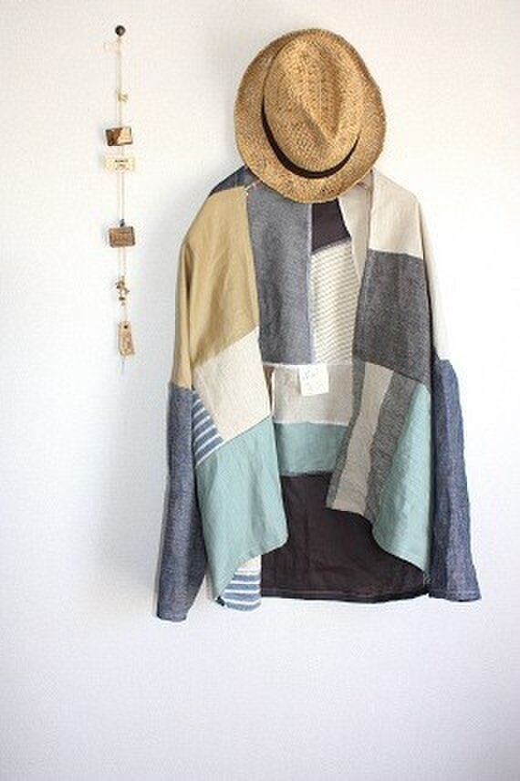 フランスリネン、ヨーロッパリネン、コットンリネン・・・端切れをパッチして他にはない、個性のある柄合わせでお作りしました。