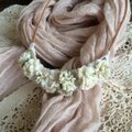 白詰草とクローバーをレースの土台に付け本革の丸紐でネックレスに仕立てました。