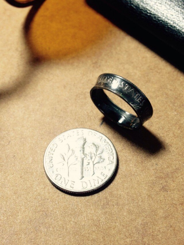 アメリカの10セント銀貨を加工して作ったコインリングです。