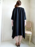 脇がドレープ状に長くなっている女性らしい華やかなドレスワンピースです
