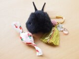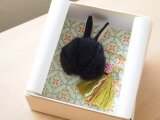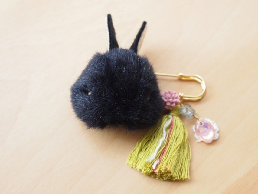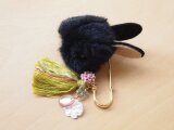 和のふんわりブローチ*緑の房飾りうさぎ黒