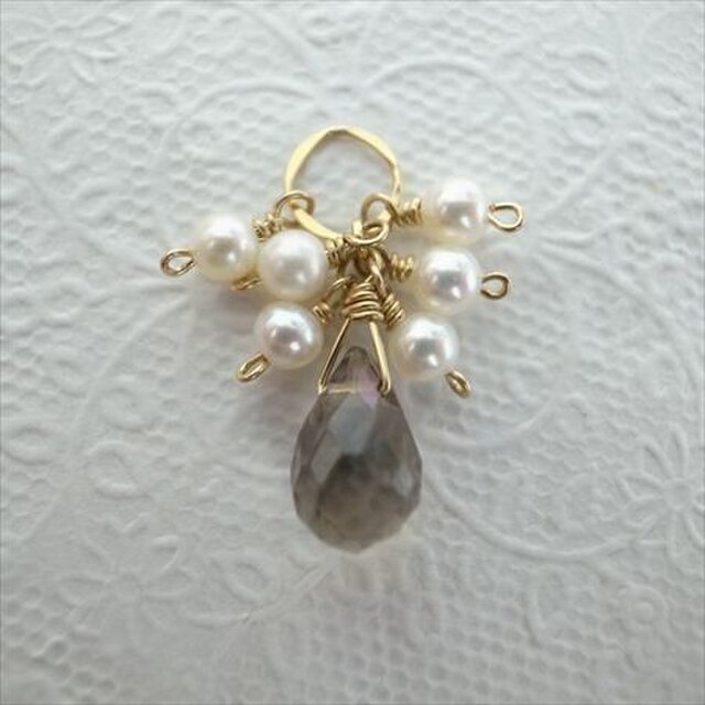 minor定番の淡水パールとライトスモーキークォーツの組み合わせのチャームです。
