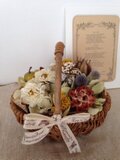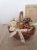 バスケットにたっぷりのお花や実物を詰め込んだ花かごです。