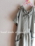 【完売】W45半袖リネン前ヒモリボンフード付ワンピース★GM