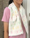 長さもフェイスタオルだと短く首から落ちてしまいやすいので、フェイスタオルより長めです。