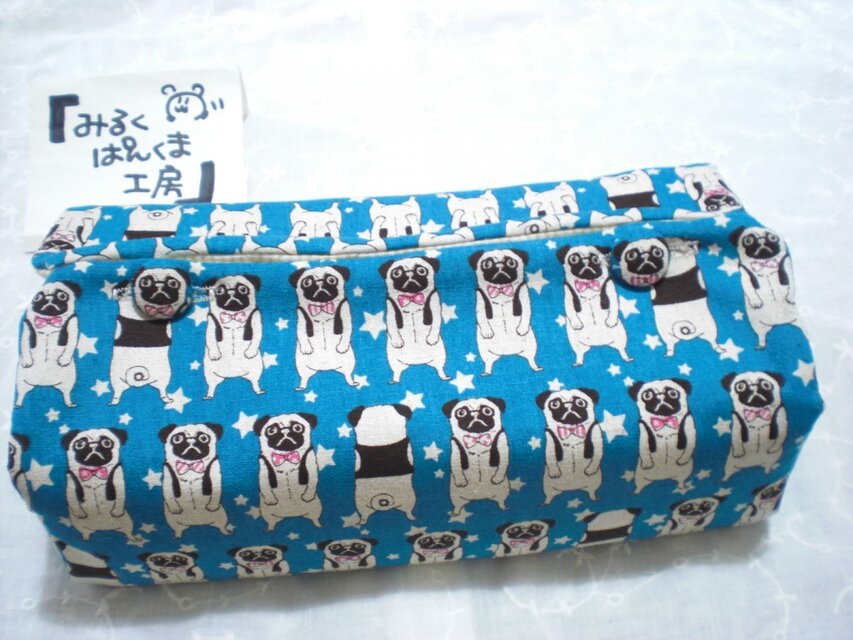 青地にブルドッグさんたちがたくさんの可愛いカバーです。ぶちゃ犬好きにはたまりませんねっ。