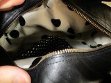 裏地は白地に黒のの水玉柄がプリントされたコットン生地。黒地のピンドット柄ポケット一つついてます。