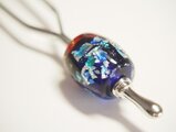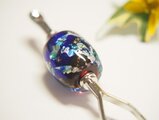 青と赤の地に銀泊を貼り 青系の色ガラスを重ね 金粉を散らしたとんぼ玉を