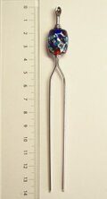 青と赤のキラキラとんぼ玉かんざし 耳かき二本足