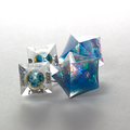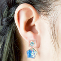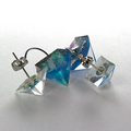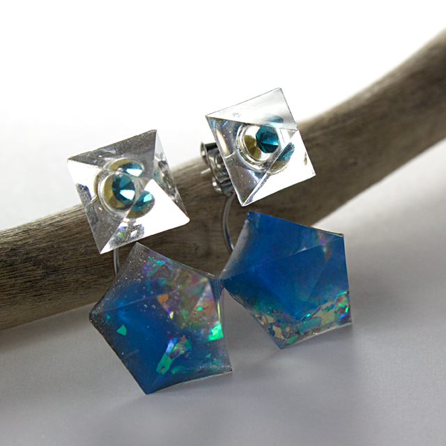 ブルーとオーロラをクリスタルレジンで閉じ込めたペンタゴン型のランタンピアスです。