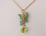ペリドットのマロンカットとエメラルドのボタンカットビーズを使用しました。