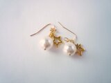 スワロフスキーのパールと星のパーツを組み合わせたピアスです。