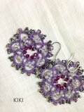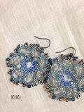 木綿糸で2種類のビーズとスワロフスキーを編み込んで作りました。
