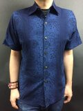 吉兆藍木綿半袖シャツ(グラデーション唐草花)