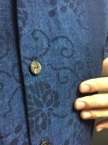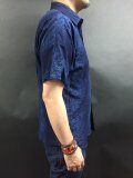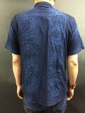 新作手作り吉兆藍木綿半袖シャツ(グラデーション唐草花模様)