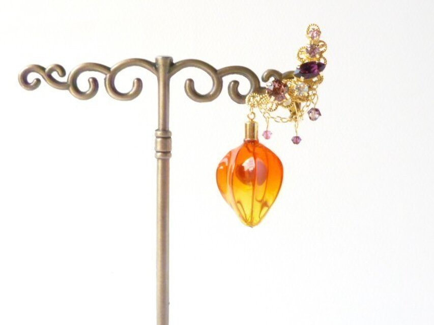 透明感のあるとても艶やかな鬼灯のイヤーカフです。