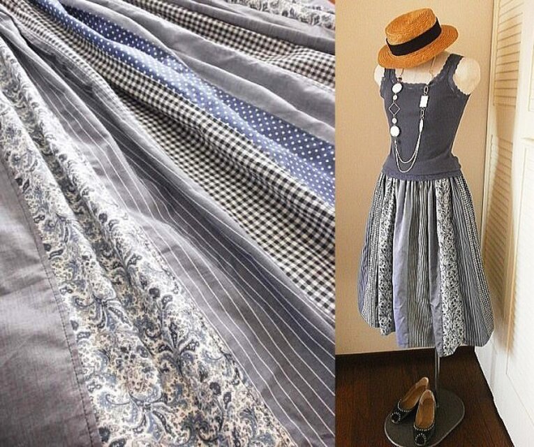 一つひとつ、絵を描くように作ったパッチワークスカートです。