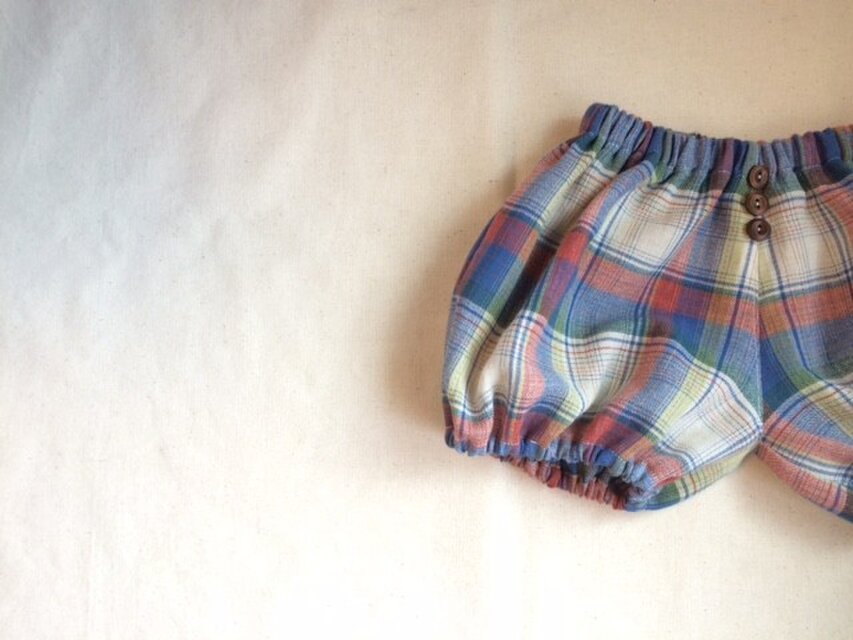 生地量をたっぷりと使い、コロンとしたかわいい形になっています。サイドを少しすっきりさせたかぼちゃパンツもありますので、あわせてご覧ください。