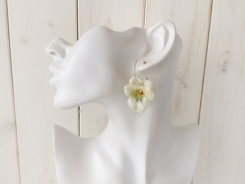 耳につけた時、マネキンにつけているほどではございませんが、少し下向きになります。ご了承ください