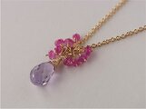 アメジストのブリオレットとルビーのボタンカットビーズを使用しました。
