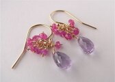 アメジストのブリオレットとルビーのボタンカットビーズを使用しました。